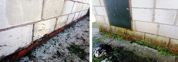 Отсутствует облицовка цокольной части наружных стен по всему периметру дома. Пенобетонные блоки доходят вниз практически до отметки отмостки (земли). Потребуется устройство прочного морозостойкого цоколя (облицовка наружных стен на высоту не менее 30-40 см от уровня земли)
